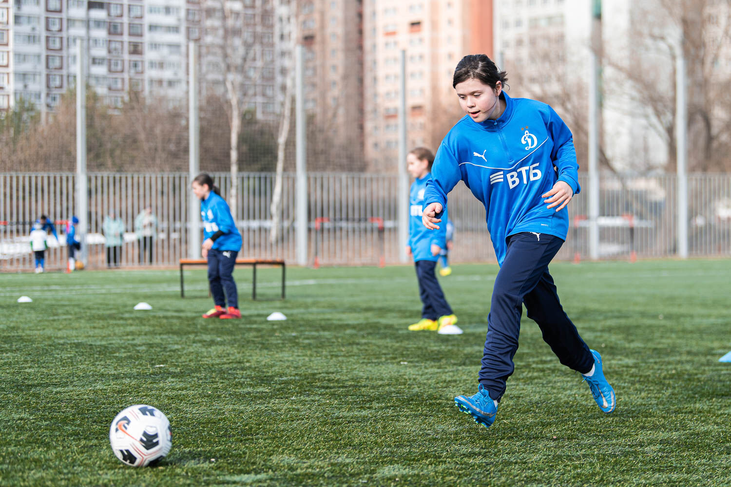 Самая младшая по возрасту команда в системе женского футбольного «Динамо» (до 13 лет) провела в пятницу, 8 апреля контрольную встречу со сверстницами из ЖФК «Царицыно». Матч прошел на поле «Парка Дружбы» в формате «два тайма по 30 минут» и «7 полевых игроков + вратарь». К сожалению, наши девушки потерпели поражение со счётом 5:7 (2:3 после первого тайма).